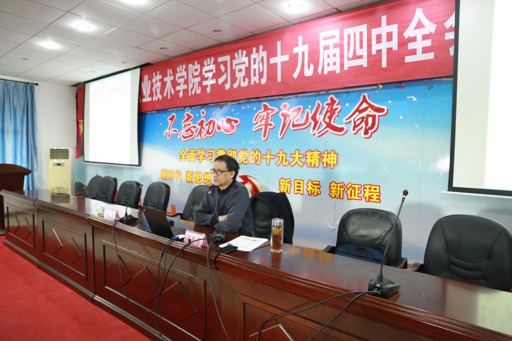 12月3日下午,我校在办公楼四楼召开全体教职工大会,并邀请湖南省人民政府参事、湖南省重大决策咨询智囊团专家肖万春教授为教职工做党的十九届四中全会精神解读。