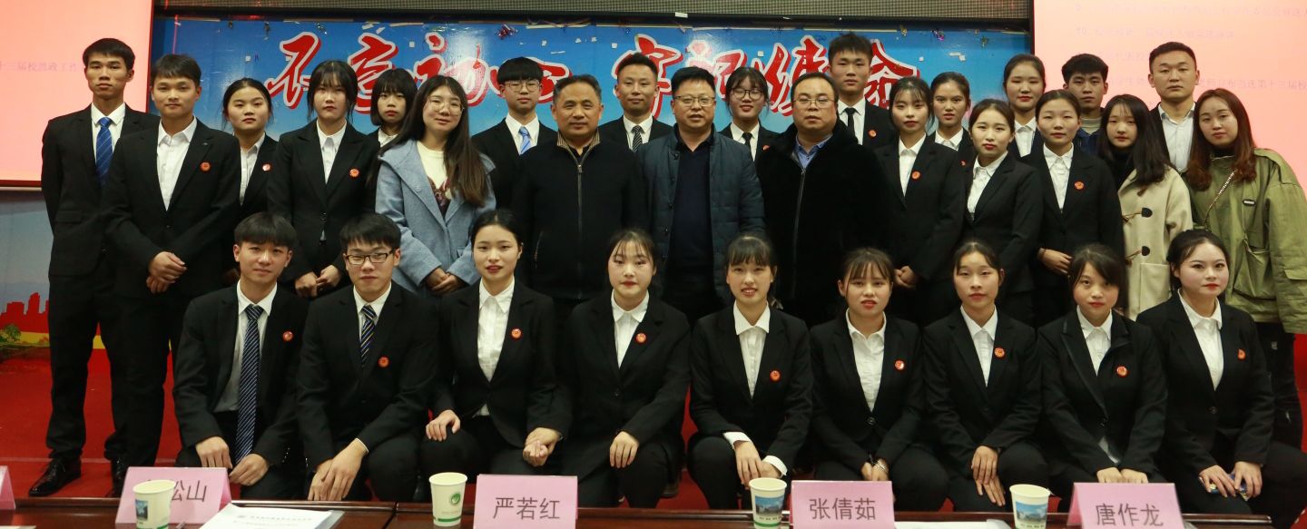 2019年11月25日,华亿在线第十三届校思想政治工作学生委员会换届大会在办公楼四楼会议室正式召开。学校党委委员、副校长严若红、学生工作处处长刘松山、学生处肖兴、组织人事处张倩茹参加了本次大会。会议由校思政副主任张攀攀主持。