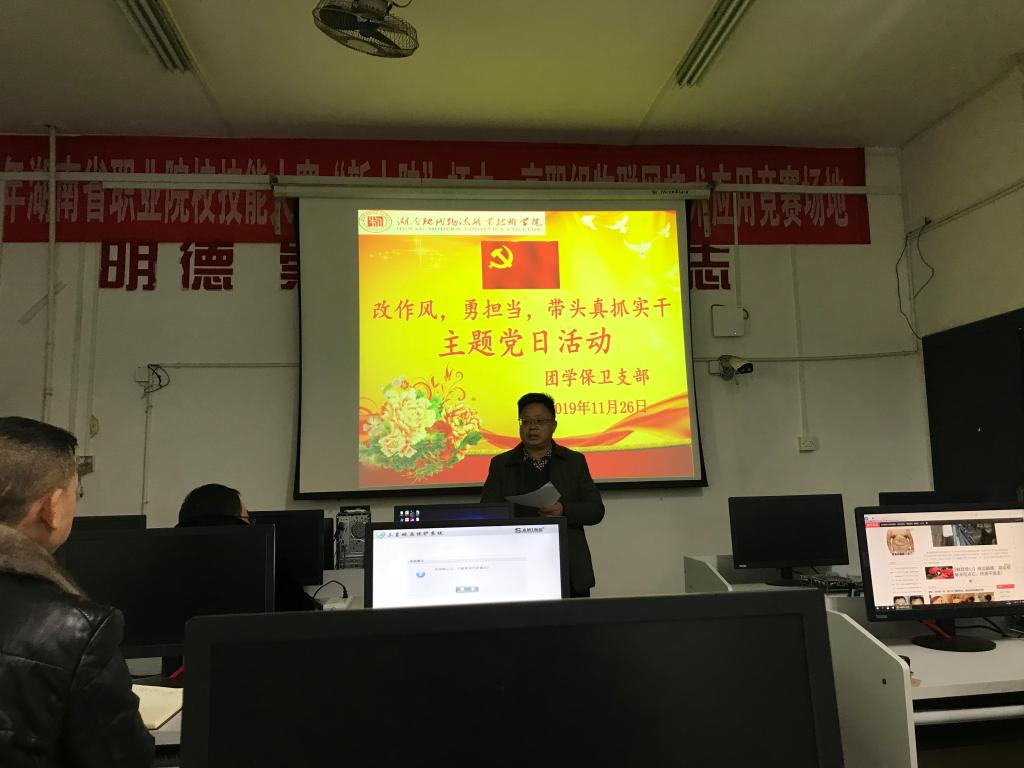 11月26日下午14:30,团学保卫党支部在科技楼204开展“改作风,勇担当,带头真抓实干”主题党日活动,学生工作处、团委、保卫处全体党员参加。