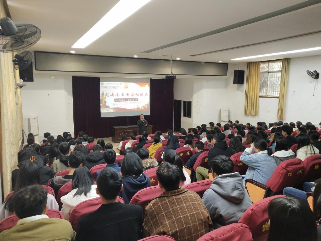 为深入贯彻落实习近平总书记关于宪法学习宣传教育的系列重要指示精神,通过组织开展丰富多样的实践教育活动,引导新时代大学生自觉尊崇宪法、学习宪法、遵守宪法、维护宪法、运用宪法,成为宪法的自觉遵守者和坚定捍卫者,学生工作处按照学校统一部署要求,迅速行动起来,启动仪式上,肖兴老师宣布我校学习“宪法小卫士”活动实施方案,并对全体学生会干部发出学宪法诵宪法考宪法,争做“宪法小卫士”的倡议,号召全体学生都来学习宪法知识、传递宪法精神,同时要求要把活动做实,按照学校安排和活动方案积极推进学习进程,在学校营造良好的校园学法氛围。最后,校学生会成员代表全体学生宣誓,引导全校青年学生自觉遵守宪法、捍卫宪法。