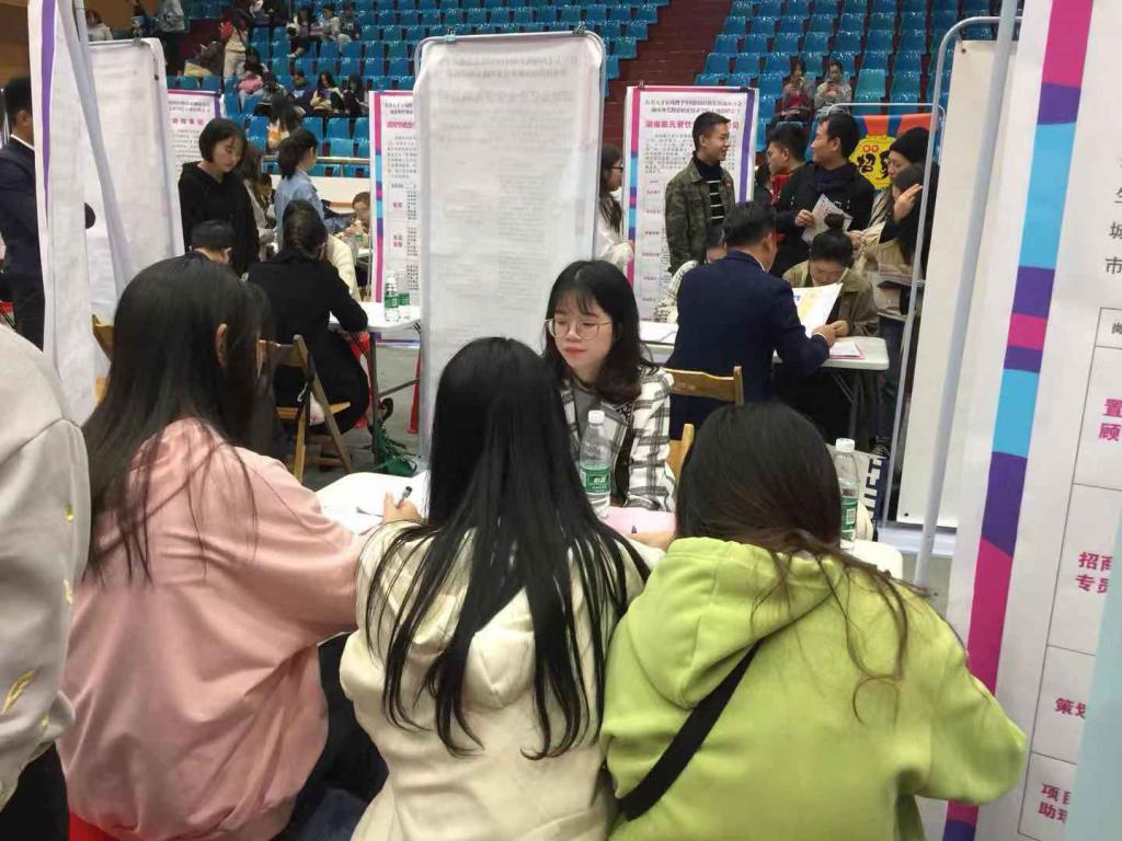 为切实做好2020届毕业生就业工作,更好地为毕业生与用人单位搭建双向选择平台。11月13日下午,由学校校企合作与就业处组织的“红星人才市场携手中国HRD俱乐部湖南分会华亿在线专场招聘会”在学校体育艺术馆举行。