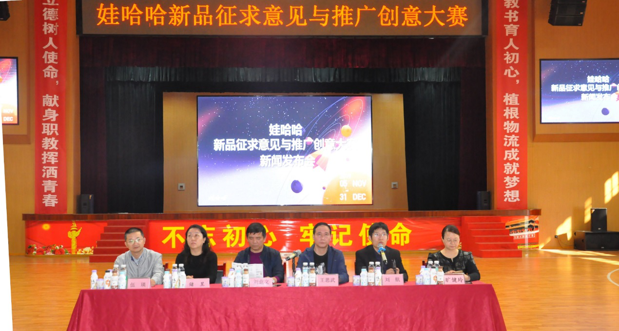 2019年11月15日,娃哈哈集团有限公司在我校体艺馆开展了“娃哈哈新品征求意见与推广创意大赛”活动,并于14:00圆满落下了帷幕。