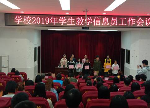 最后,陈建华副校长为教学信息员颁发了聘书,做了关于加强教学信息员队伍建设的讲话,并对2019级教学信息员提出了两点希望和两点要求,一是希望大家做好表率,服务好教师和学生; 二是希望大家以强烈的集体荣誉感做好老师、学生、领导的桥梁和纽带;三是要求大家要及时收集、反馈信息;四是要求大家对反馈的信息要摸准、核实。