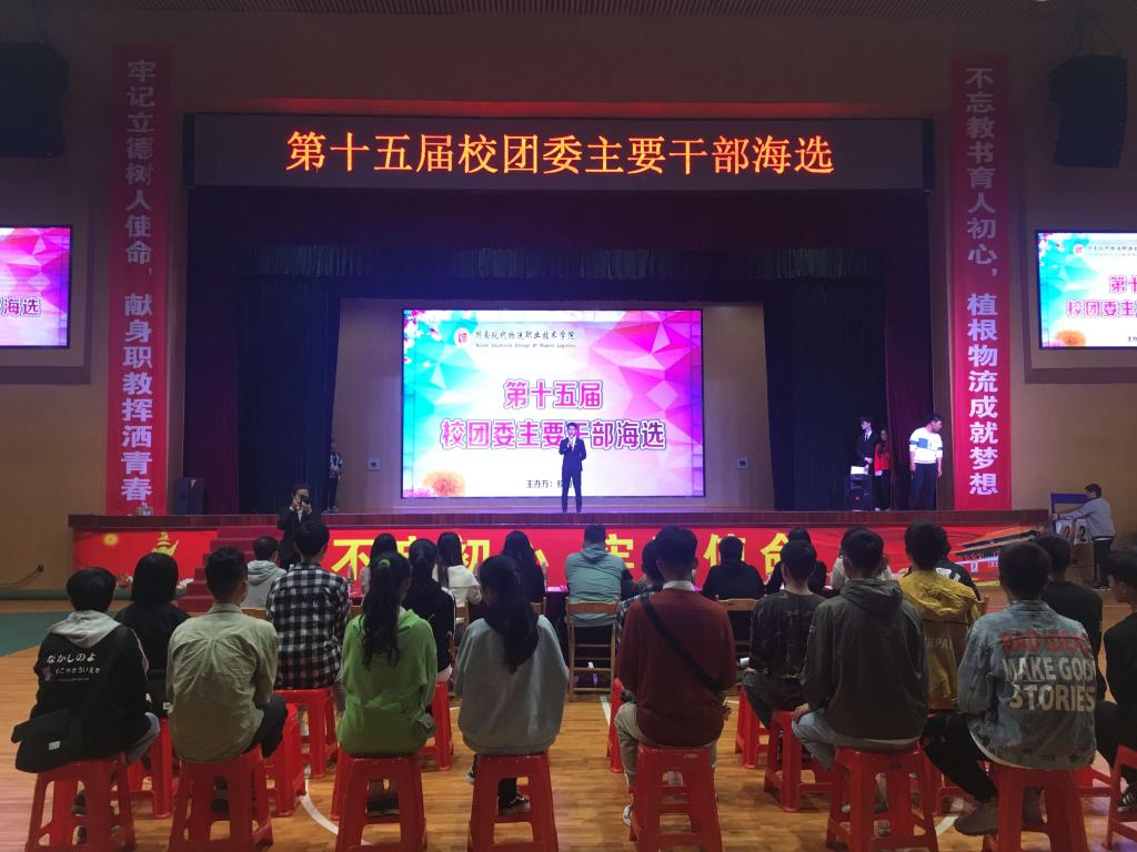 2019年10月22日中午12:30,校团委第十五届主要干部海选在体育馆前坪热闹开场,由校团委学生副书记和各部门负责人担任评委。主持人首先介绍了此次海选活动的目的,是为了挖掘更多优秀人才,进一步夯实团委干部的群众基础,让学生在实践中成长成才,更好地为学生服务。活动分为自由展示和现场问答两个环节,选手们表现积极,表达了竞选的决心,展示了自身优势,评委们根据职务要求和实际情况提出的各类问题,选手们回答机智、表现稳定。经过两个小时的角逐,共选出14名校团委主要干部候选人,他们将作为候选人参加第十五届团学代表大会。