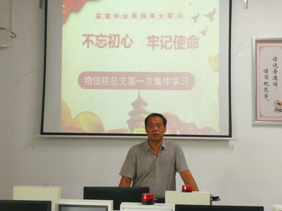 2019年9月24日下午15:00,物信学院在科技楼105教室组织全体党员进行党总支本学期第一次主题党日活动——开展 “不忘初心,牢记使命”主题教育集体学习会。