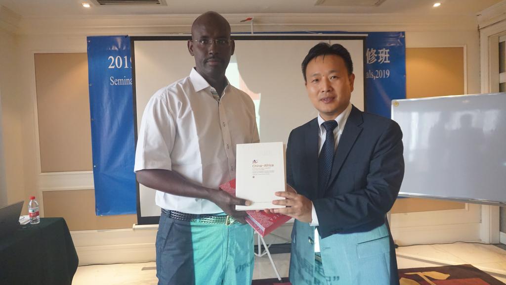 图:龙吟书记给索马里学员赠《中非经贸合作案例方案集》书籍