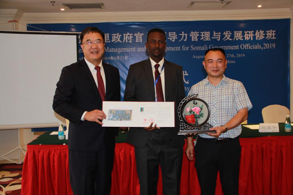 据悉此次研修班从8月8日至8月27日,历时21天,20名学员来自索马里政府各部委的高级官员代表。项目期间,我校及外请专家共16名教授组成导师团队,高质制定培训方案,紧扣研修班主题,就领导力管理与提升、非洲国家经济建设中政府的角色定位与执行等问题开设专题讲座与学员深入探讨,高质高效的完成了此次研修班的专业讲座培训任务,是“授人以渔,以人为本”的真实写照。