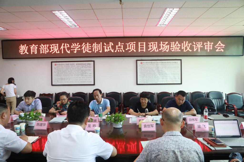 龙吟对专家组左家哺一行的到来表示欢迎,向验收组专家汇报了我校近年来在产教融合、校企合作育人方面的举措,特别是我校成为全国第二批现代学徒制试点单位以来,认真贯彻落实相关文件精神,在学徒制人才培养中取得的成绩。项目负责人梁飞对项目建设情况进行了全面汇报,他分别从校企协同育人机制的建立、招生招工一体化的推进、人才培养模式的创新、校企互聘公用师资团队建设、管理制度创新和特色亮点等方面作了详实阐述,同时总结了不足,并提出对未来的展望。验收组专家认真听取汇报,对我校试点工作所取得的成绩给予充分肯定,认为我校在现代学徒制人才培养的实践中所探索出的一套现代学徒制人才培养机制值得借鉴,同时对今后我校的现代学徒制工作开展给出了建设性指导意见。