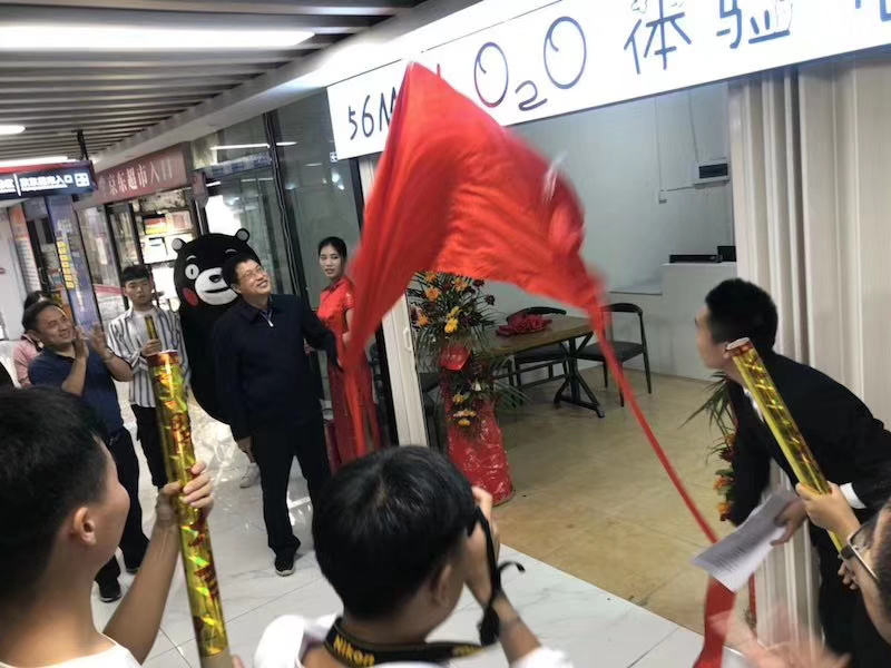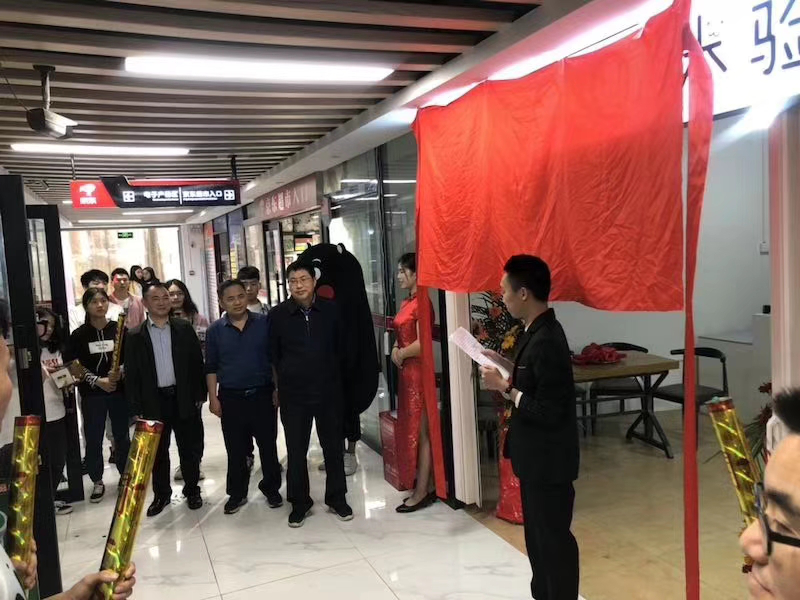 5月21日,学生创业项目56mall O2O体验店正式落户京东产教融合园,上午10点举行了体验店揭牌仪式。学校邓德艾校长、严若红、陈建华副校长、党政办李先红主任、教务处潘果处长、物信学院刘建辉书记、校企合作与就业处唐鹰尼副处长、团队指导老师欧阳红巍老师出席了揭牌仪式。
