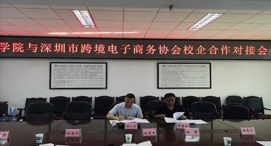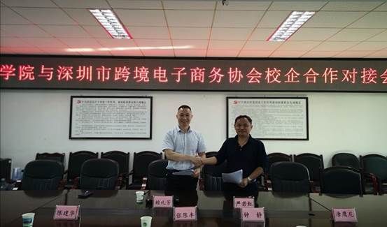 5月23日下午,深圳市跨境电子商务协会人才总监赖礼芳、经理张陈丰到我校进行校企合作对接。双方在办公楼三楼会议室召开了对接会。副校长严若红、副校长陈建华、物管学院院长钟静、信息学院院长米志强、校企合作与就业处副处长唐鹰尼参加了对接会。