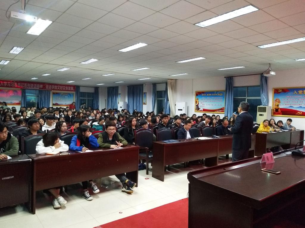 4月29日晚上,湖南中华职教社副秘书长周勇在办公楼四楼会议室做了题为“创新创业,做更好的自已”的讲座,宣告了我校“创新创业月”正式启动。校企合作与就业处赵建军处长、伍瑛副处长,及300余名参加创新创业大赛的学生和部分指导老师参加了讲座。