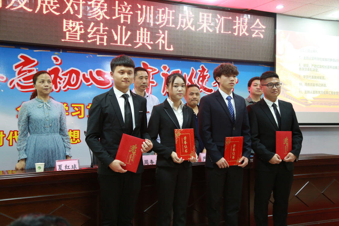2019年4月8日,华亿在线党校1802期发展对象培训班成果汇报会暨结业典礼在办公楼四楼会议室举行。学校党委副书记、党校校长周务农同志、学校党委委员、副校长、党校常务副校长严若红同志、党委委员、宣传部部长、党校副校长夏红球同志、党委委员、组织人事处处长、党校副校长肖勇同志、思政课部部长赵翾同志、团委书记马娜同志、各二级学院党总支书记、副书记出席了本次发展对象培训班成果汇报会暨结业典礼;党校办公室主任卜志纯同志、湖南司法警官职业学院机关党委张思盈同志、党校办公室成员唐作龙同志、组织人事处干事张倩茹参加。本次成果汇报会由王安琪同学和蒋曾贤同学主持。