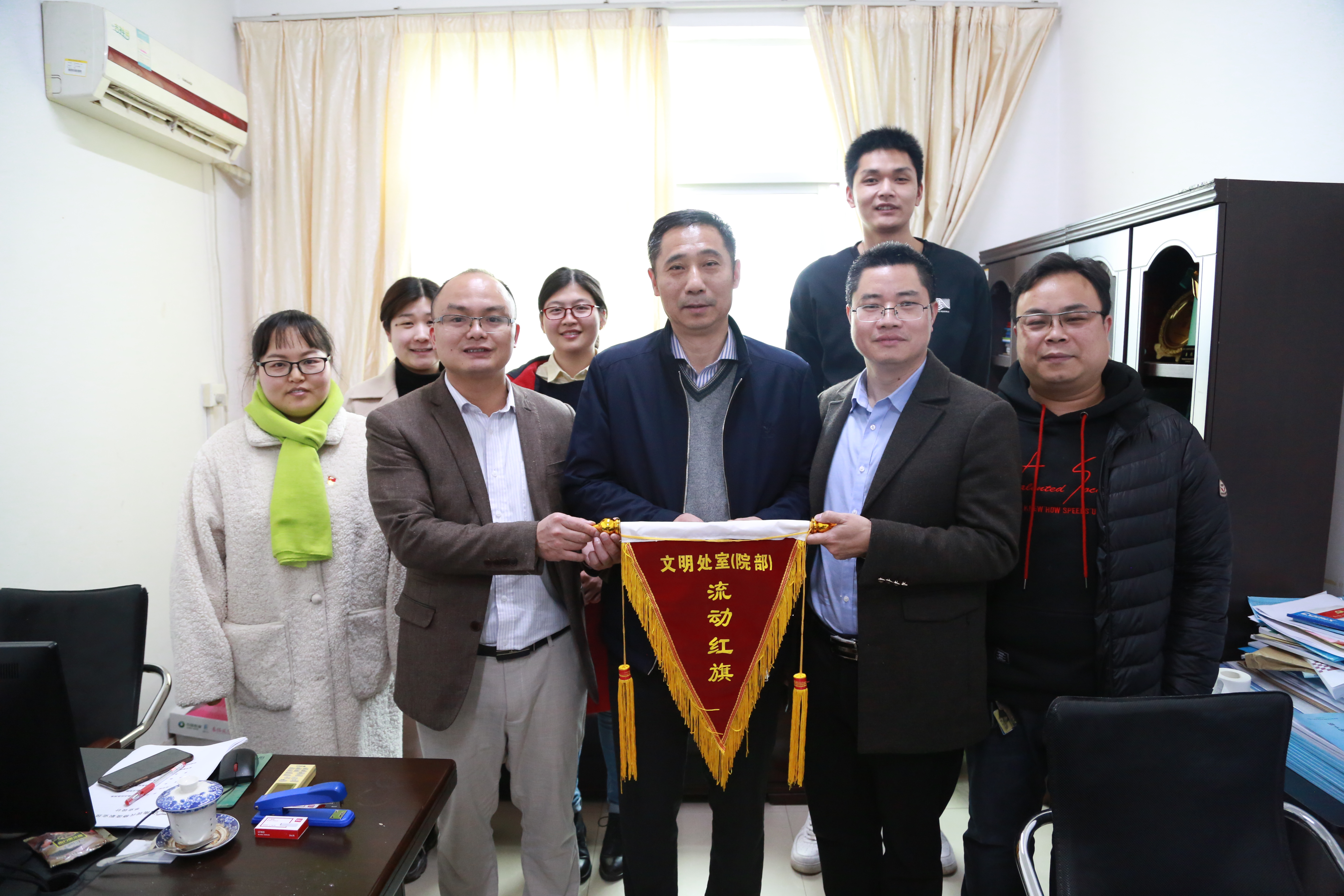 日前,物流人文艺术学院在华亿在线2018年下学期文明处室评比中荣获文明院部,学校党委副书记周务农、宣传统战部部长夏红球、工会主席朱斌、物流人文艺术学院副院长姚济国、蒋兴君等出席文明院部流动红旗的授予仪式。