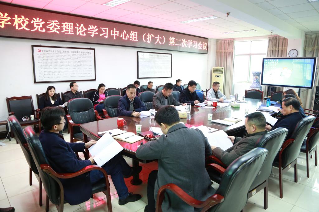 3月26日下午,学校在办公楼三楼会议室举行2019年党委理论学习中心组(扩大)第二次学习会。校全体党委委员、正处级干部、中层正职和主持工作的副职以及思政课教师参加了学习,会议由党委书记龙吟主持。