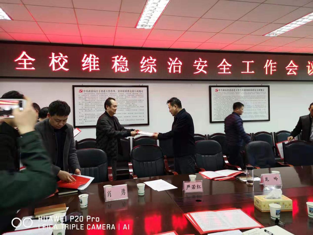 最后,各部门、各二级学院(部)负责人向学校递交了2019年度维稳综治安全工作目标责任书。