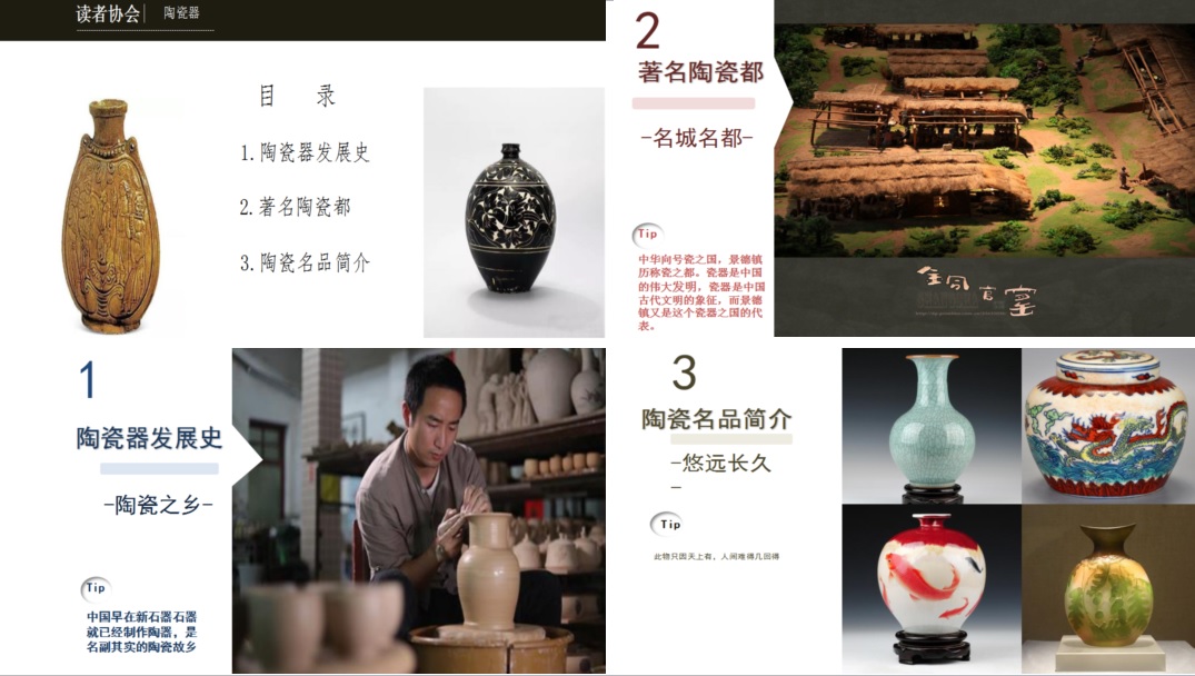 参赛作品内容五彩纷呈,有茶文化,传统剪纸文化,陶器的发展、筷子的哲学、刺绣的特色、孝文化的丰富内涵以及中国戏剧等。参赛形式以小组为形式,以ppt为展示平台,进行讲解式的演说。参赛人员热情激昂,全身心投入,阐述着自己对某种传统文化的见解。与观众的精彩互动,用精心组织的图片,彰显了茶的韵、陶的雅、绣的美、孝的义等等,让所有在场的读者对各类传统文化有了更深切的认识。