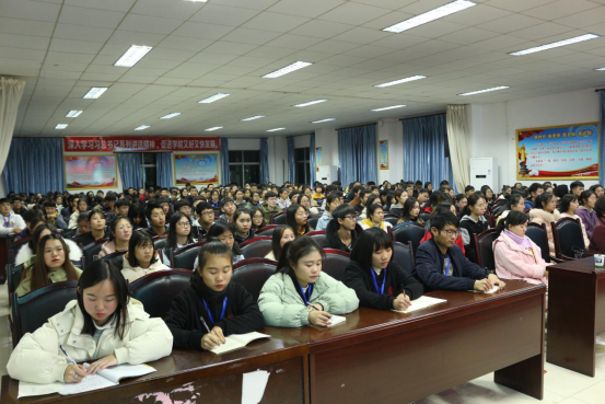 12月17日晚湖南农业大学原正校级督导员、博士生导师、二级教授彭克勤抽出宝贵时间来到我校,在办公楼四楼会议室为2018届300多名校团学干部作“仁慈友善、和谐发展”主题报告。报告会由学校党委委员、副校长彭六生主持,湖南农业大学关工委副主任李正秀、学校学生工作处、团委负责人和部分二级学院书记聆听了报告。会上彭教授结合自身的经历和现实生活中大量的案例以幽默风趣、生动诙谐的语言阐述了友善的内涵、友善的功能与价值、全世界呼唤友善和青年大学生如何践行友善,和谐发展。报告会深入浅出,循序渐进地引导教育,使在场的每一位同学都能够感受到友善的力量。