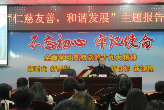 通过“仁慈友善、和谐发展”主题报告会,加强了学生对社会主义核心价值观的教育,引导学生将“友善”“和而不同”“仁者爱人”“与人为善”“已所不欲,勿施于人”“出入相友,守望相助”等文化价值作为待人处事的行为准则,不断修炼自己善良的品行,形成和加强与人为善、守望相助的良好师生、同学关系;通过识恩、知恩、感恩、报恩和施恩的人文教育,引导大学生培养感恩意识,知恩图报的品德,以实际行动感恩父母、感恩师长朋友、感恩国家、感恩自然。