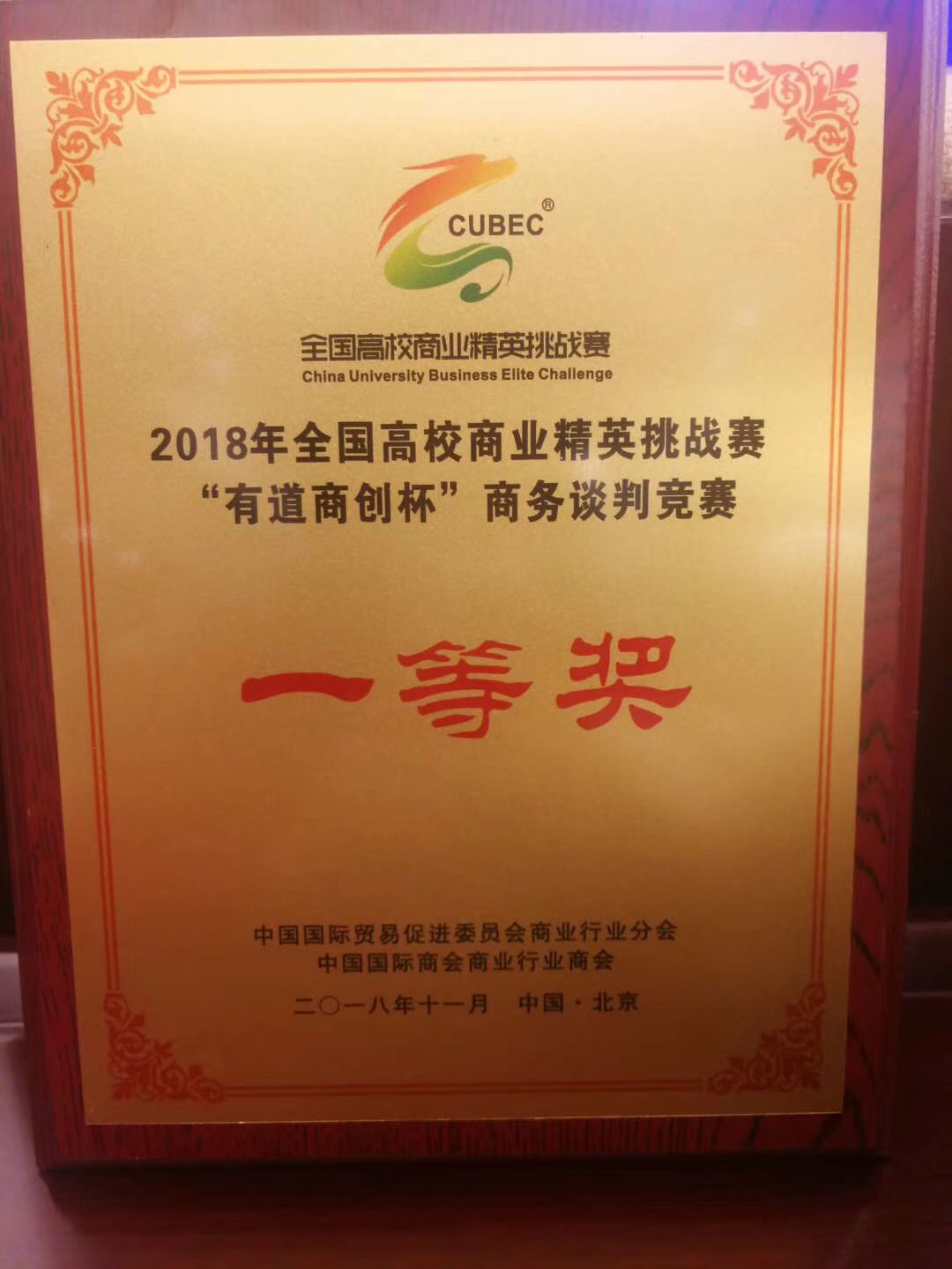 由教育部高等学校经济与贸易类专业教学指导委员会、中国国际贸易促进委员会商业行业分会和中国国际商会商业行业商会共同主办的2018年全国高校商业精英挑战赛 “有道商创杯”商务谈判竞赛于11月25日在北京对外经贸大学落下帷幕。