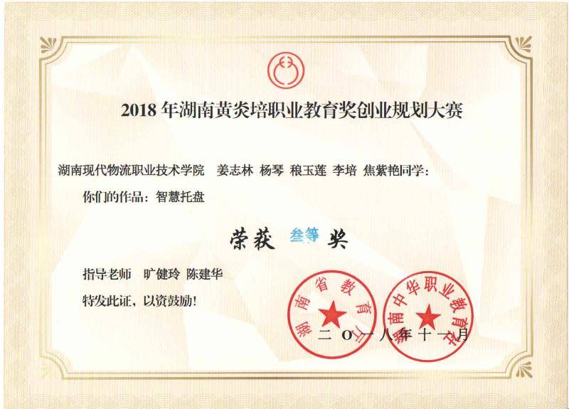 2018年11月21日,2018年湖南黄炎培职业教育奖创业规划大赛主体赛在经过一天的比赛后,在湖南教育电视台演播厅落下帷幕并举行了颁奖典礼。
