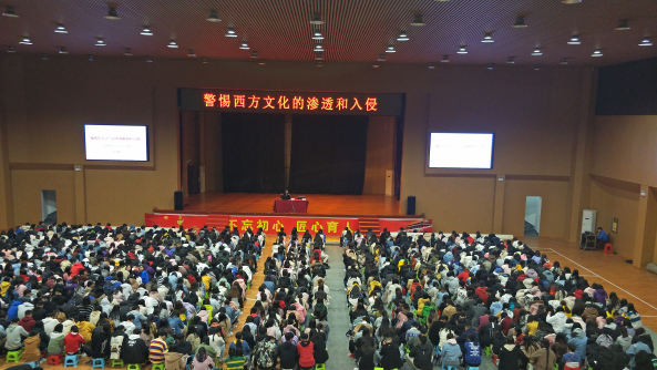 为贯彻落实全国高校思想政治工作会议精神和全国教育大会精神,学校建立了校党委委员每学期为大学生讲思想政治理论课的制度。2018年11月12日至14日连续三天,学校体艺馆座无虚席,我校党委副书记、研究员、校长邓德艾以《警惕西方文化渗透和入侵》为主题,给全校大学生上了一堂生动精彩的思政课。该活动由思政部、教务处主办,学生处组织,思政课部部长赵翾主持。
