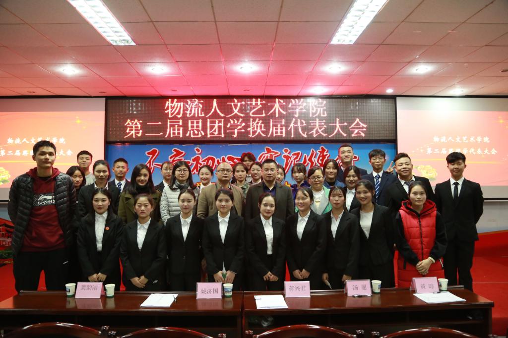 2018年11月20日,物流人文艺术学院第二届思团学换届代表大会在办公楼四楼会议室隆重召开。出席此次代表大会的嘉宾有:党总支副书记、副院长姚济国,党总支副书记、副院长蒋兴君,学生干事汤愿,团总支书记龚韵洁,以及黄晔、左宛鑫、刘倩三位辅导员。校学生会、校团委、校宿管会、校思政、各学院代表以及物流人文艺术学院各班级代表们300余人参加了会议。