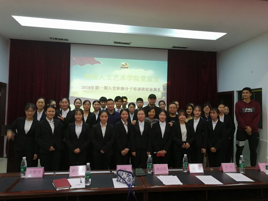 2018年10月31日,物流人文艺术学院2018年度第一期入党积极分子培训班结业典礼在学术报告厅隆重举行。参加本次结业典礼的有物流人文艺术学院党总支书记刘淑一,副书记姚济国、蒋兴君,纪检委员唐彪,组织委员肖兴,宣传委员汤愿,交通服务师生联合党支部书记李翠琴,到场的还有物流人文艺术学院全体思政委员会成员及2018年度第一期入党积极分子。