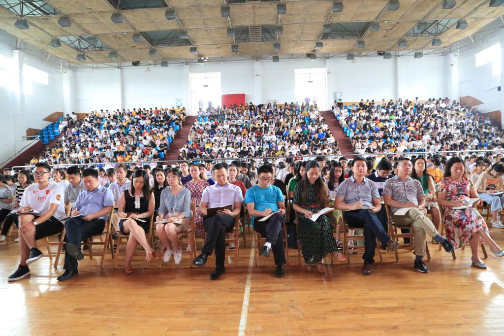 根据教育部关于“千万师生同上一堂课”的统一部署,学校于今天下午在体艺馆举办“学习新思想,千万师生同上一堂课”专题讲座。讲座由学校党委书记龙吟主讲,题为“爱国立志求真力行,做德智体美全面发展的社会主义建设者和接班人”,学校师生党员代表和干部代表近千人听取了讲座。