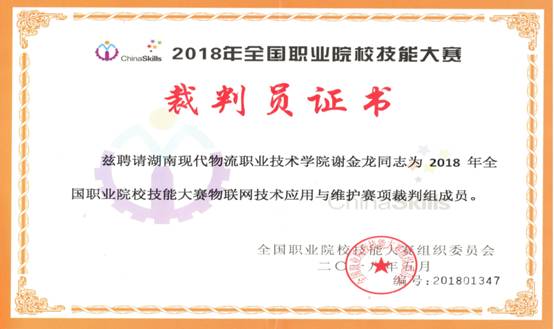 我校物流信息学院谢金龙老师受竞赛执委会的邀请,参加了2018年全国职业院校技能大赛中职组“物联网技术应用与维护”赛项的裁判工作。