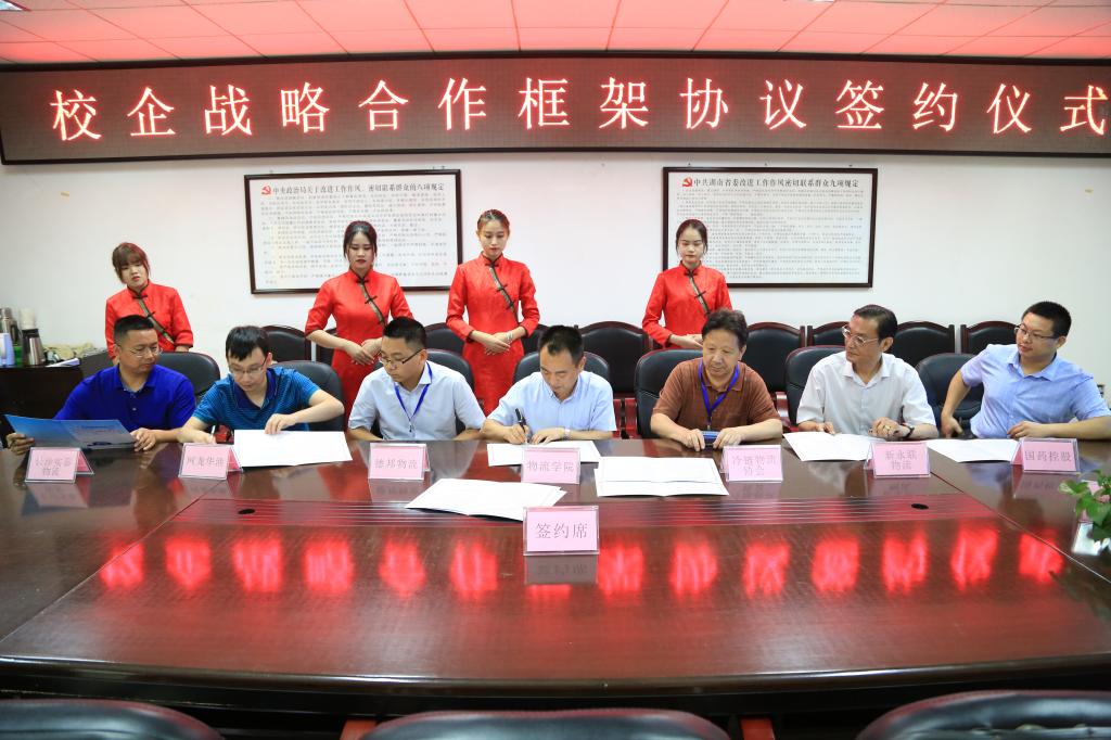 5月22日下午,由物流工程学院举办的校企合作精准育人研讨会在办公楼三楼会议室隆重召开,学校副校长陈建华、校企合作与就业处处长赵建军、物流工程学院院长梁飞、副院长刘丽军作为校方代表参会;湖南省冷链物流行业协会、安吉智行物流长沙分公司、长沙一汽汽车有限公司、德邦物流有限公司、长沙实泰物流有限公司、湖南中物联规划研究院、长沙比亚迪汽车有限公司、中铁五局四公司等19家湖南省本土企业代表出席会议。会议由赵建军主持。