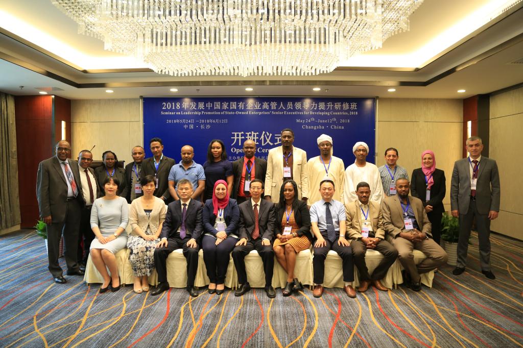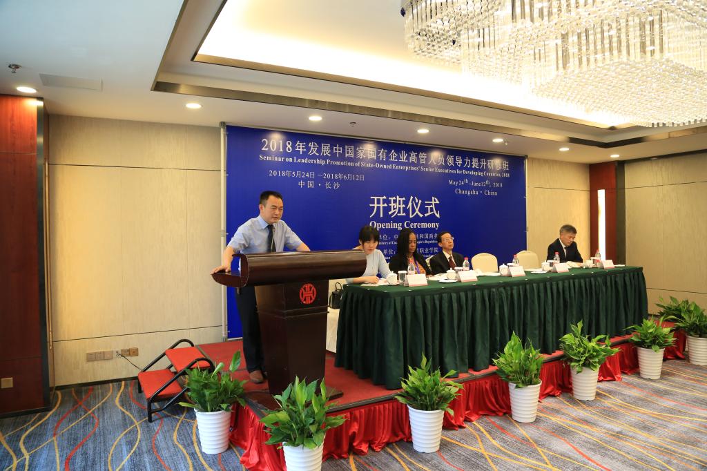 2018年5月24日上午,国家援外培训项目 “2018年发展中国家国有企业高管人员领导力提升研修班”在星沙华天大酒隆重举行开班仪式。此次援外培训由国家商务部和省商务厅主办、湖南外贸职业技术学院承办、我校协办,培训对象为“一带一路”沿线国家以及部分发展中国家的国有企业高管代表。
