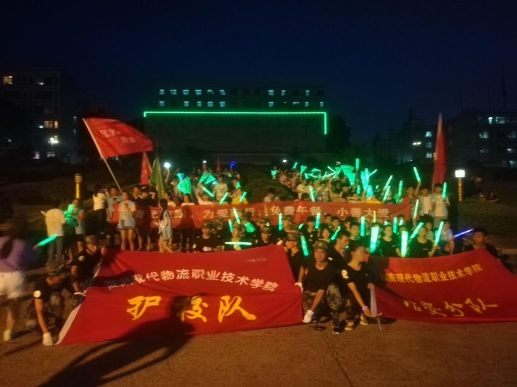 2018年5月25日晚7点,由中国社会福利基金会免费午餐基金会、华亿在线校团委主办,华亿在线青年志愿者协会承办,长沙县新安交警中队、湖南司法警官职业学院青年志愿者协会、湖南警察学院青年志愿者协会、湖南水利水电职业技术学院青年志愿者服务中心、湖南大众传媒职业技术学院FLY公益协会及长沙电力职业技术学院欣然环保协会协办的“荧光夜跑,为爱而行;免费午餐,小善大爱”的公益活动在物流学院校门口正式启动。本次“荧光夜跑”将奔跑与公益相结合,让同学们感受健康夜跑的同时也为山区的小朋友献上了温暖,达到宣传健康运动和积极献爱心的目的。