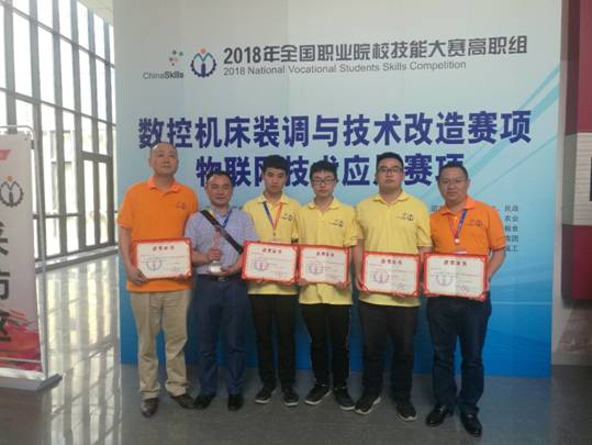 我校副校长陈建华率谢金龙、邹志贤老师,选手张孟祥、陈斌、罗阳经过激烈角逐,从众多参赛队伍中脱颖而出,荣获了全国一等奖的好成绩,实现我校一类赛事国赛一等奖零的突破。