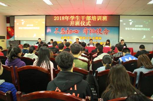 在邓校长上课之前举行了隆重的开班仪式,学校党委委员、副校长严若红、学生工作处负责人、二级学院学管领导出席了开班仪式。在开班仪式上,学生干部代表做了培训学习承诺发言,学生工作处刘松山处长做了培训动员报告,严若红副校长对全体培训学员提了三点要求,学生干部一要发挥示范影响作用;二要通过抓学风促学风提素质、强能力;三要为“五个物院”的建设做出应有的贡献。