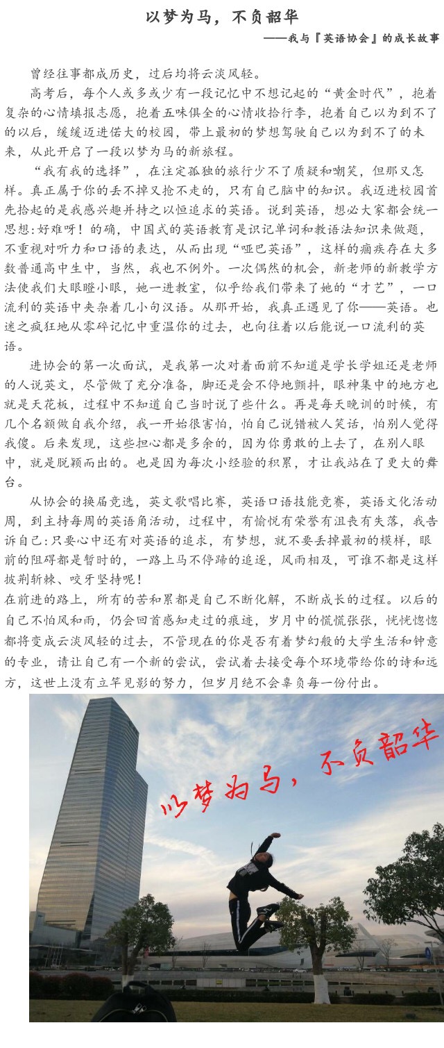 此次比赛收到来自各个协会成员的共计90份作品,经物流人文艺术学院团总支严格筛选出20份作品进入复赛。经过老师指导、选手再次修改之后,选出14份作品、14个协会代表进入决赛的评选。决赛阶段,评选方式推陈出新,总分值由微信投票(占40%)与评委老师打分(占60%)两方面相加组成。三天的微信投票异常热烈,在校内外引起高度关注,最高票选作品达到2893票。综合评选之后,物院演说家协会李倩获得一等奖,英语协会吴水姣、物流信息技术协会陶洁获得二等奖,舞蹈协会王彩云、德语协会刘歆若、大学生记者站唐昕宇获得三等奖,其余8人获优胜奖。