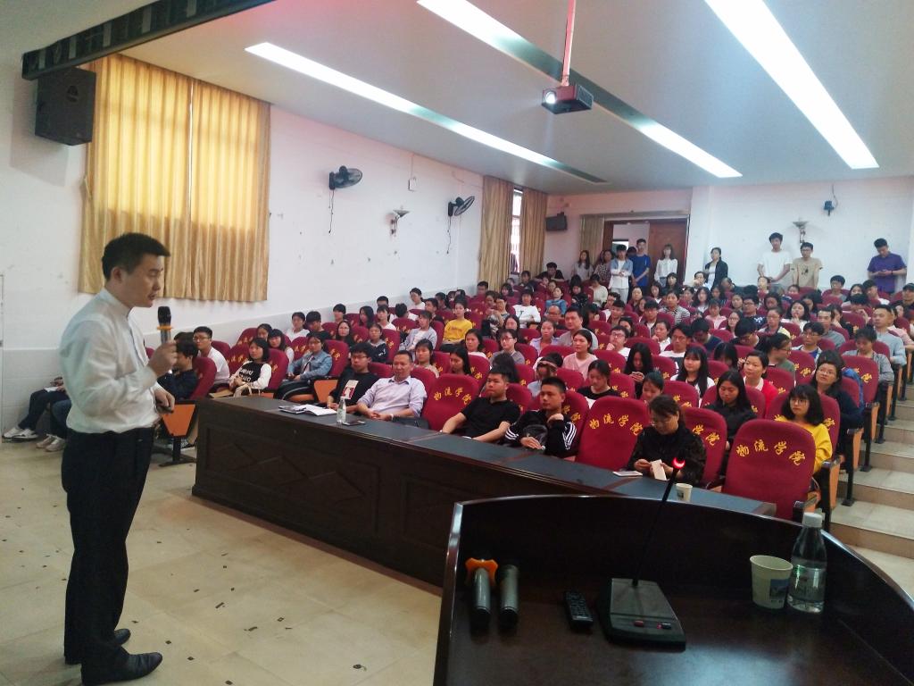 4月3日下午,新道科技股份有限公司湖南区首席双创专家、副总经理成忠先生在图书馆报告厅为我院参加第四届“互联网+”大学生创新创业大赛的指导老师和学生做了“拥抱双创新时代,创新创业在路上”的专题报告。我校200余名师生听取了报告,现场气氛十分热烈。成忠先生是教育部全国万人优秀创新创业导师,也是教育部第二届中国“互联网+”大学生创新创业大赛总决赛评委,湖南省、安徽省、河北省、江西省、河南省教育厅第二、三届“互联网+”大学生创新创业大赛总决赛评委,具有丰富的竞赛指导经验。