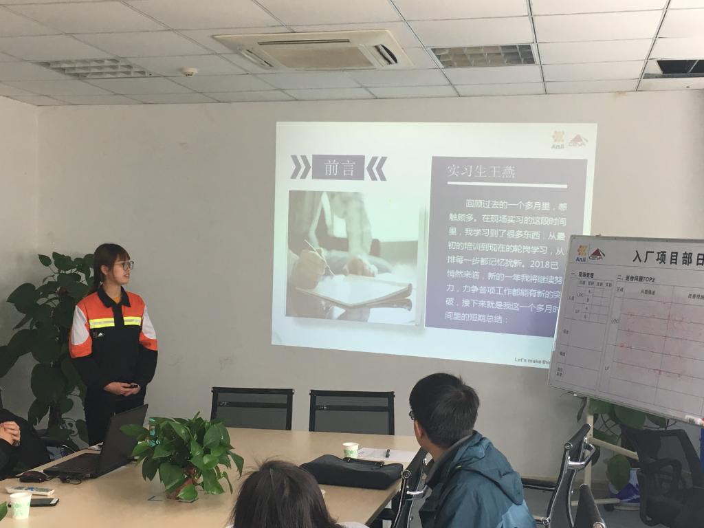 自2017年教育部现代学徒制项目立项以来,物流工程学院严格按照《项目实施方案》的具体任务,扎实推进试点工作。3月8日,安吉智行物流学徒班企业学习阶段性汇报会于长沙安吉智行物流有限公司举行。入场项目部经理唐志健、运行管理部经理张龙汉、人力资源部经理陈博宇及企业带教师傅出席会议,我院物流工程教研室主任廖罗尔老师应邀参会。汇报会上,各学员对近阶段的学习以及自身岗位工作进行总结,对工作、学习中发现的问题进行了深入思考,并回答了各部门领导的提问。各部门主管领导对各位学员的工作以及汇报表现作出了高度赞扬。