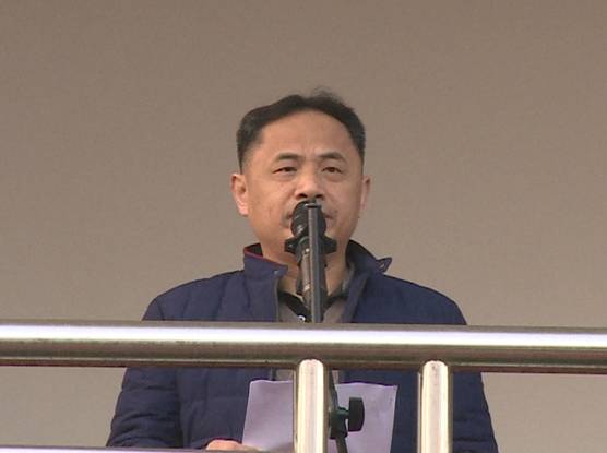 升旗仪式结束后,校党委委员、副校长严若红在国旗下讲话。首先,严校长代表学校党委、行政向全体师生致以亲切的新年问候。接着,严校长在总结过去一年学校各项工作取得的成绩同时传达了学校将进一步加强立德树人工作,加强学生综合素质全面提升的工作思路;最后严校长带来了学校旧貌换新颜的喜讯,在2018年的暑假期间,学校将利用三个月的时间对学校所有设施进行全面改造,为同学们打造舒适的生活环境,为同学们学习成长提供坚强保障。