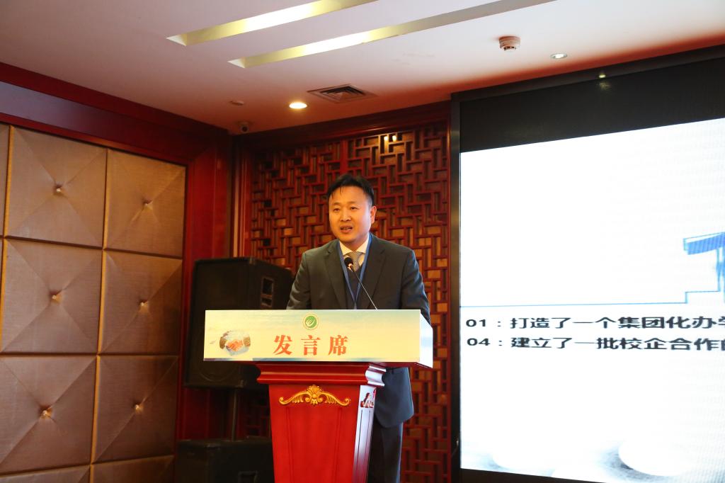 我校党委书记龙吟在会上讲话。他认真总结了我校在校企合作方面所取得的成效。