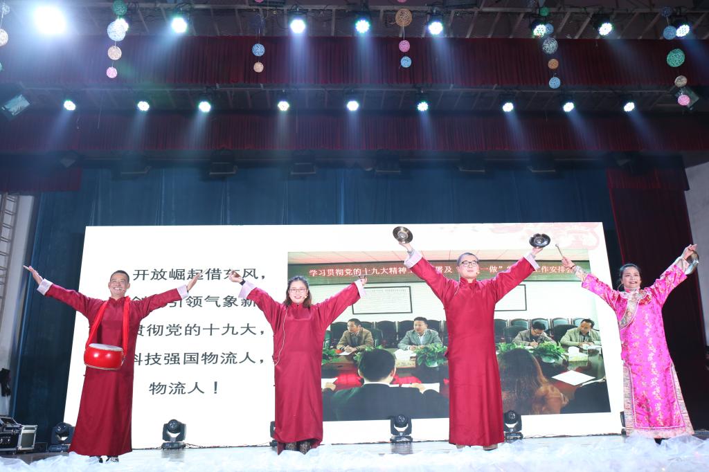 校长致辞后,晚会节目陆续登场,争奇斗艳,人文艺术学院童一帆老师带来了柔情似水的歌伴舞《万水千山总是情》;舞蹈协会带来了变幻莫测的舞蹈《风云》;物流信息学院毛雯老师带来的小品《我想我爱你》讲述了爱情的真谛;人文艺术学院团总支带来的舞蹈《再不疯狂我们就老了》灵动有趣、青春四溢;物流管理学院团总支带来的女子群舞《黎乡笠影》展示了少数民族姑娘对爱情的美好向往;校教工篮球队、排球队、足球队的老师与团委公关礼仪部的学生共同带来了活力四射的T台秀;护校队的搏击操《渴望光荣》令人热血沸腾,展示了校园卫士们的风采;工会、团委、各二级学院团总支和德语协会的老师们带来的情景表演《驴得水》片段意境优美,寓意丰富;宣传部带来的原创作品《物院征程》以三句半的表演形式,讲述了物院与祖国共发展的动人故事;物流商学院的领导与老师带来了可爱无敌的抖音舞《青春的回忆》;街舞协会带来的《Magic coat》设计独具匠心,变化多端,令观众意犹未尽;“金钥匙”成果汇则集聚了德风国学社、惟馨纸艺社、星炽动漫协会、武术协会、青年志愿者协会等优秀社团代表,展示了我校大学生素质拓展的良好成果。