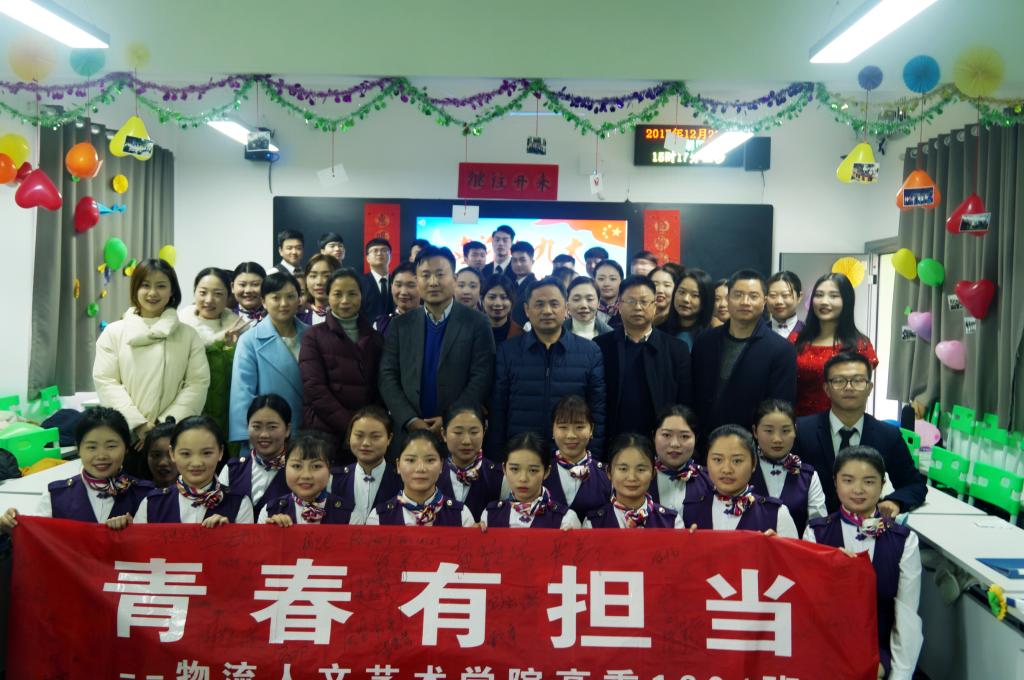 2017年12月28日下午,物流人文艺术学院高乘1604班在教学楼309教室召开“学习十九大,青春永担当”——不忘初心敢于担当团日主题活动。本次活动是全校师生“学习十九大”报告精神开展的系列活动之一,得到学校以及人文艺术学院领导的高度重视,学校党委书记龙吟、学校党委委员副校长严若红、学校党委委员宣传部部长夏红球、学校校学生处处长刘松山、学校校团委书记马娜、人文艺术学院副院长蒋兴君、各二级学院团总支书记以及校企合作老师莅临观摩了本次团会。