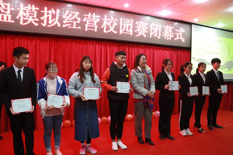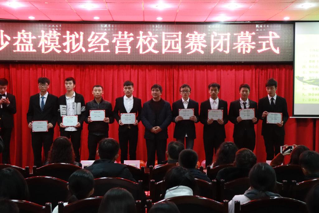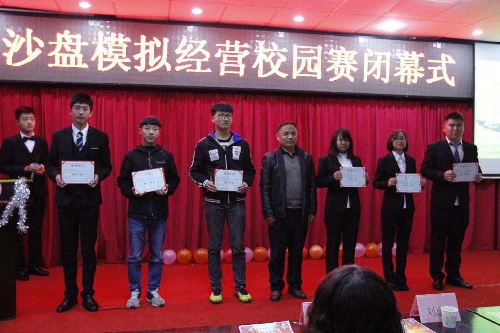 闭幕式上,各位领导和老师欣赏了精彩的节目表演,协会指导老师旷老师对此次活动进行了总结并公布了获奖名单,她指出此次比赛的分布面很广,此次比赛共有132人报名参加,42人进入决赛。参赛学生分布在全院5个学院15个专业25个班,具体来说,其分布于物管学院9个班(教改1701班、国际1701、企物1701班、1702班、1703班、1705班、1706班、1708班、港航1701班);物信学院2个班(电商1702班、1704班);人文艺术学院2个班(商英1701班、1702班);物工学院2个班(汽营1701班、电子1701班);商学院10个班(商管1702、采购1701、会计1702班、会计1706班、金融1701、营销1701班、1702班、1703班、连锁1701、国贸1701)。此次比赛的圆满成功对沙盘爱好者协会有着深远的影响,其不仅使参赛选手深刻体会到了企业运作各环节中的决策与投资策略的市场效果,培养了统观全局和系统思考的能力,提高了沙盘爱好者协会在学校的影响力,促进了同学们对沙盘的了解和参与,也提高了学生们参与到创业创业中来。