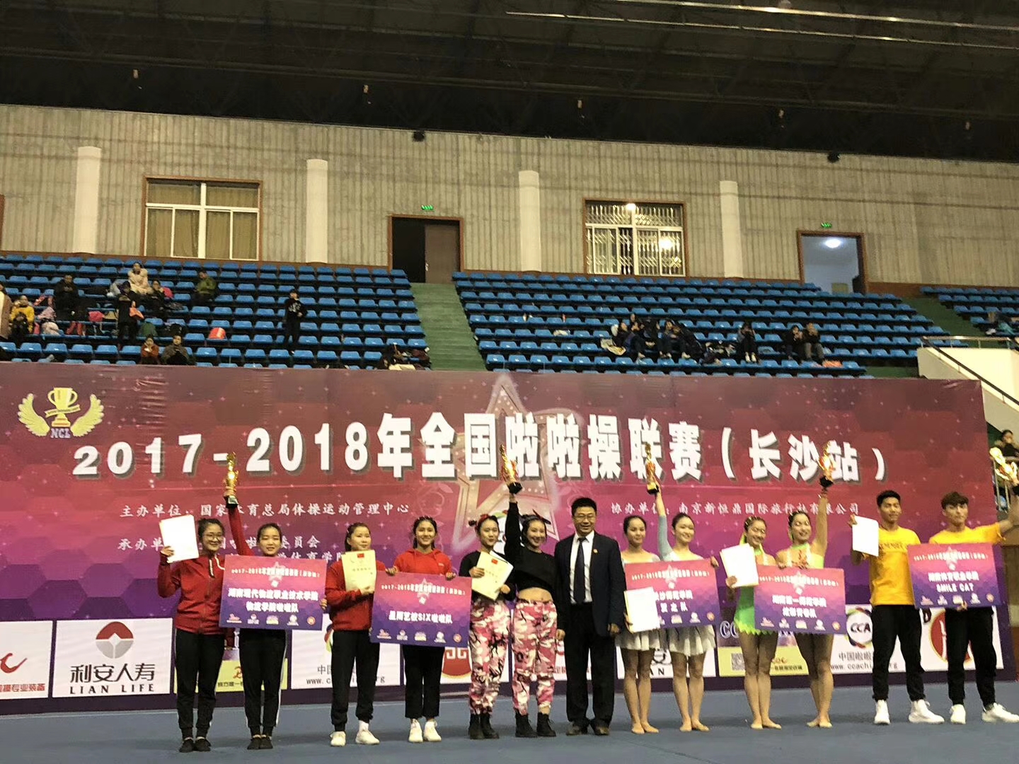 12月2日 ,由国家体育总局体操运动管理中心主办的 2017-2018 年全国啦啦操联赛(长沙站)圆满落幕,我校健美操队参与了这次比赛,最终斩获公开组青年丁组爵士啦啦操冠军,并获得代表中国参加2017-2018年国际啦啦操系列赛事的资格。