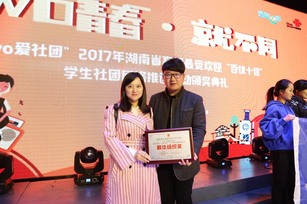 在此次全省社团评优活动中,我校物流信息技术协会获得“2017年湖南省高校百优学生社团”荣誉称号,我校团委获得“最佳组织奖”荣誉称号。