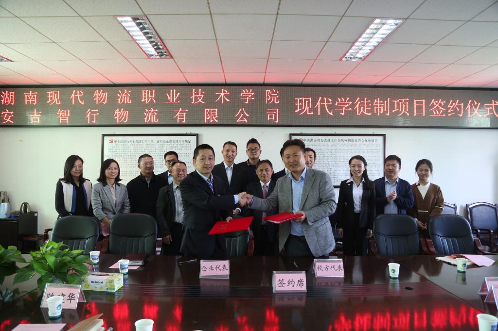 11月9日上午,我校与安吉智行物流有限公司的现代学徒制项目签约仪式在办公楼三楼会议室举行。党委书记龙吟、副校长陈建华、物工学院院长梁飞、就业与校企合作处副处长伍瑛、物工学院党总支副书记刘丽军、安吉智行物流有限公司长沙分公司总经理江桦、安吉智行物流有限公司入厂物流事业部人力资源经理俞华佳、长沙分公司人力资源部经理陈博宇、培训主管张璐出席签约仪式。副校长严若红主持签约仪式。