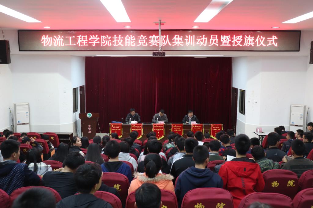 物流工程学院于2017年11月14日在学术报告厅举行技能竞赛队集训动员会暨授旗仪式。物流工程学院院长梁飞、党总支副书记刘丽军、技能竞赛各参赛队伍指导老师出席仪式,仪式由魏波主持。