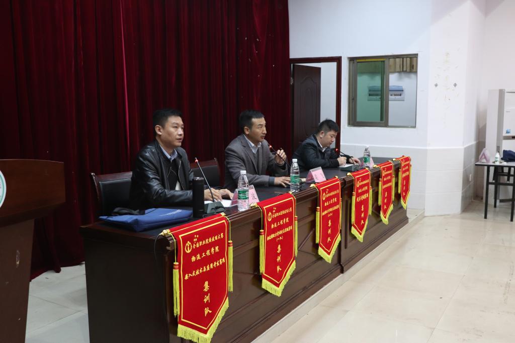 首先,刘丽军对参加技能竞赛的全体师生作动员报告,介绍参赛队伍具体情况及后续培训工作计划。随后,指导老师代表杨彪,及参赛学生代表李俊发言,明确计划、表明态度、定奋斗之目标、表努力之决心。
