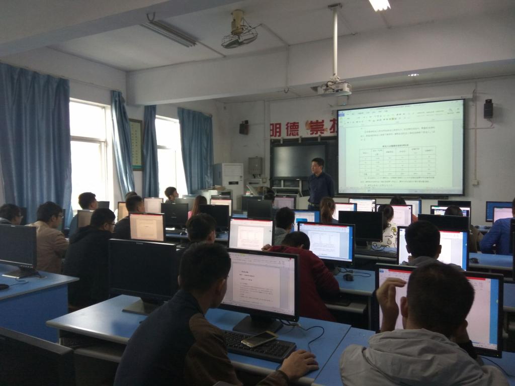 魏波老师为物管(工)1502班学生上课