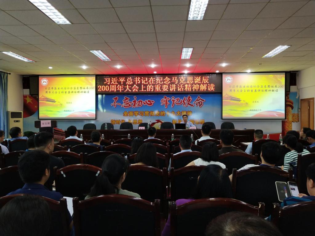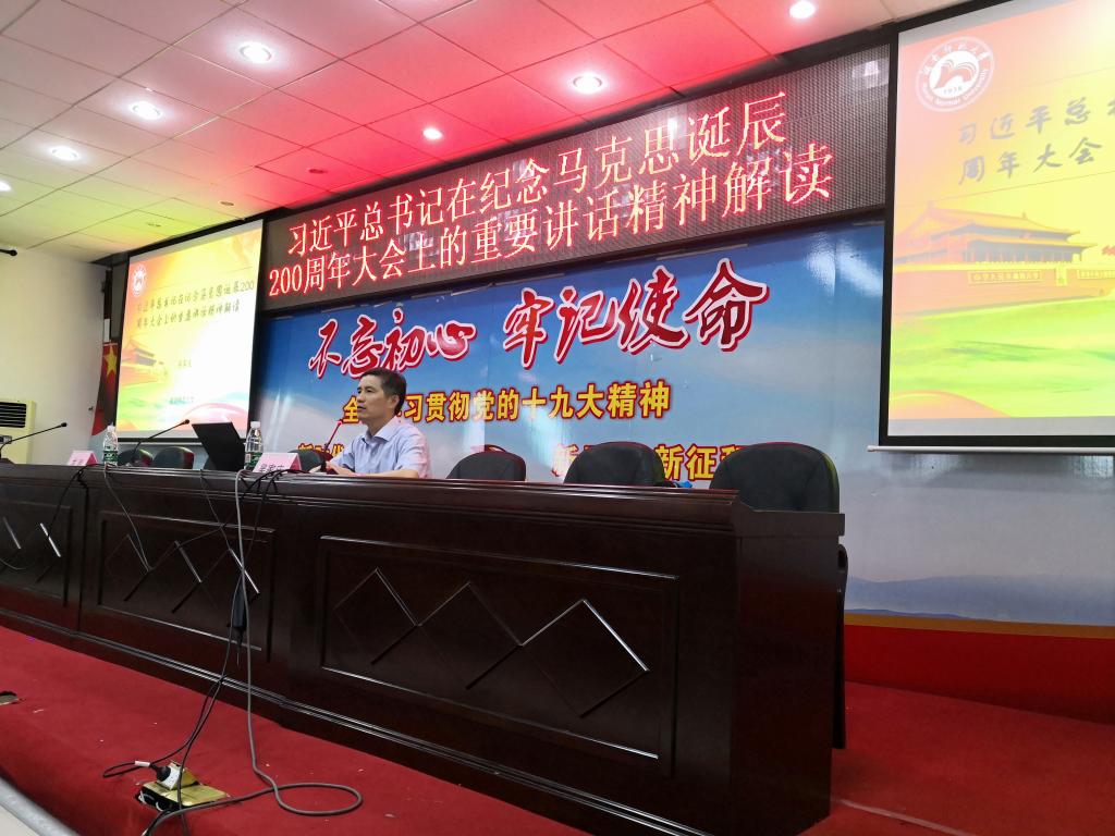 6月20日上午9:00 ,“习近平总书记在纪念马克思诞辰200周年大会上的重要讲话精神解读”主题讲座在办公楼四楼会议室举行,吴家庆教授主讲。