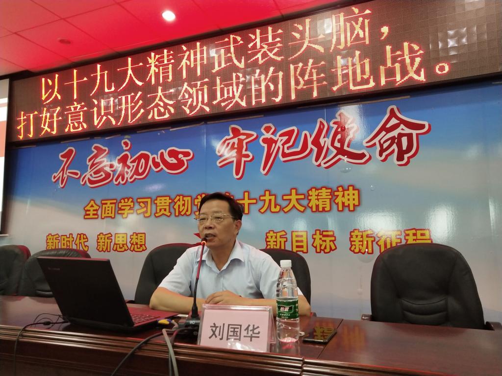 6月20日下午2:00 ,“以十九大精神武装头脑,打好意识形态领域的阵地战”主题讲座在办公楼四楼会议室举行,刘国华教授主讲。